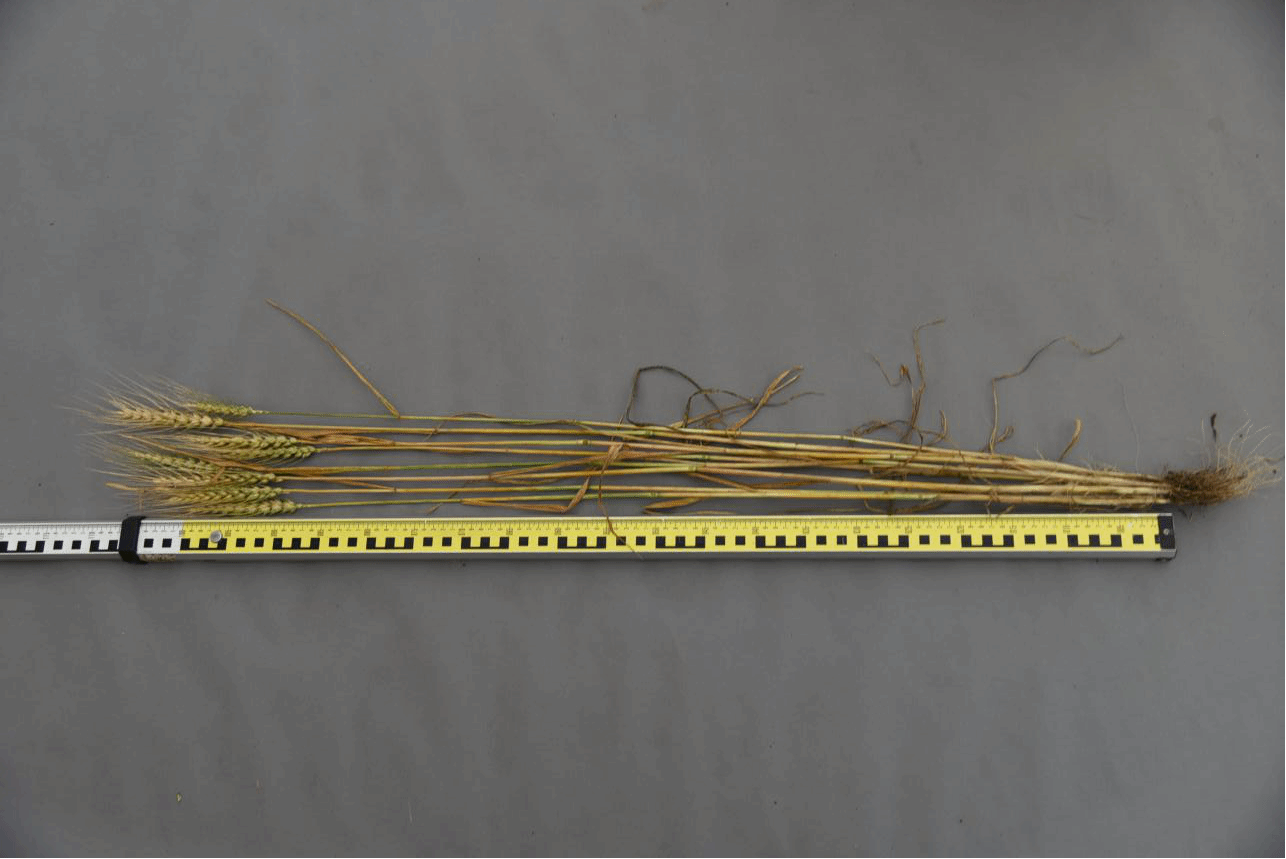 春性、全生育期93天,比对照品种垦九10号熟期稍晚,幼苗半匍匐,叶片宽,叶色黄绿,分蘖力较强。株高95厘米,株型紧凑,抗倒性较好,整齐度好,穗层整齐,熟相好。穗纺锤形,长芒,红粒,籽粒硬质,饱满度饱。亩穗数40万穗,穗粒数33.1粒,千粒重36.8克。抗病性鉴定:中感赤霉病和感根腐病,中抗秆锈病,免疫叶锈病,品质检测:籽粒容重836、798克/升,蛋白质含量16.4、15.77%,湿面筋含量35.1、34.0%,稳定时间7.6、8.1分钟,吸水率60.6、58.8%,最大拉伸阻力464、518Rm.E.U.,拉伸面积138、143平方厘米。