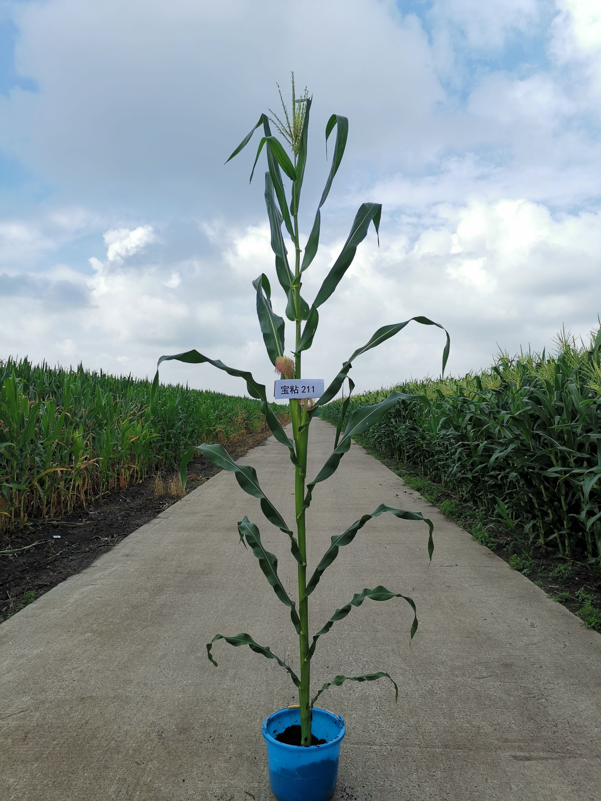 玉米研究所于2019年利用玉米自交系HA-158(母本)和玉米自交系HB-173(父本)杂交育成。该品种幼苗期第一叶鞘浅紫色,叶片绿色,茎绿色。雄穗一级分枝9~15个,颖壳绿色,花丝绿色,花药绿色。株高275厘米,穗位高126厘米,成株可见16片叶。果穗长锥型,穗轴白色,穗长20.4厘米,穗粗5.4厘米,穗行数16~20行,籽粒糯质型、浅黄色,鲜籽粒百粒重39.3克。两年品质分析结果:成熟籽粒粗淀粉72.30%~74.58%,支链淀粉(占淀粉)比率100%,食味品质86分。