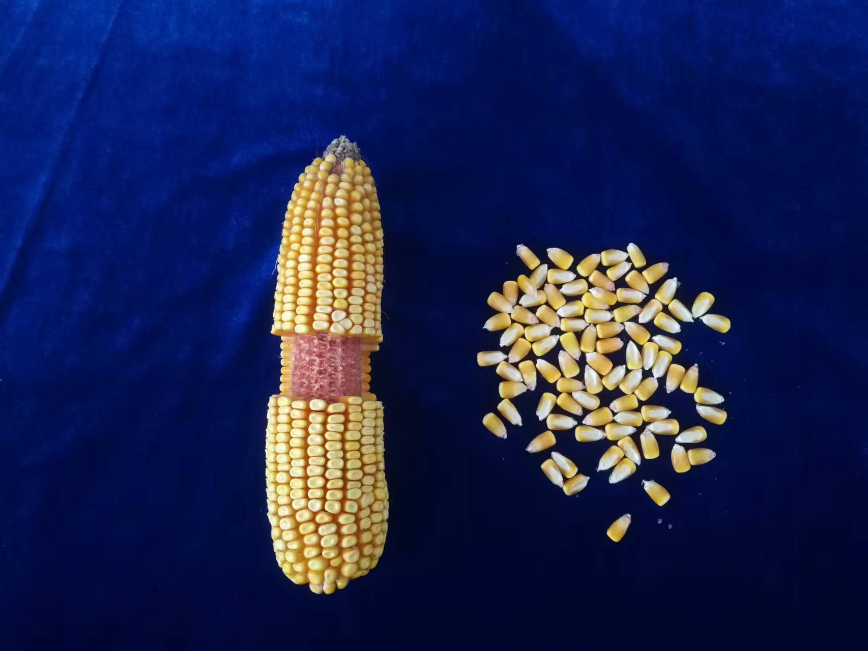 特征特性:幼苗期第一叶鞘紫色,叶色绿色,茎绿色,幼苗拱土能力强,株高285厘米、穗位高105厘米,果穗圆筒型,穗轴红色,穗长21厘米、穗粗5.2厘米,穗行数16~18行,籽粒中齿型、黄色。抗大斑病、丝黑穗病和茎腐病。需≥10℃活动积温2500℃左右,生育期124天左右。