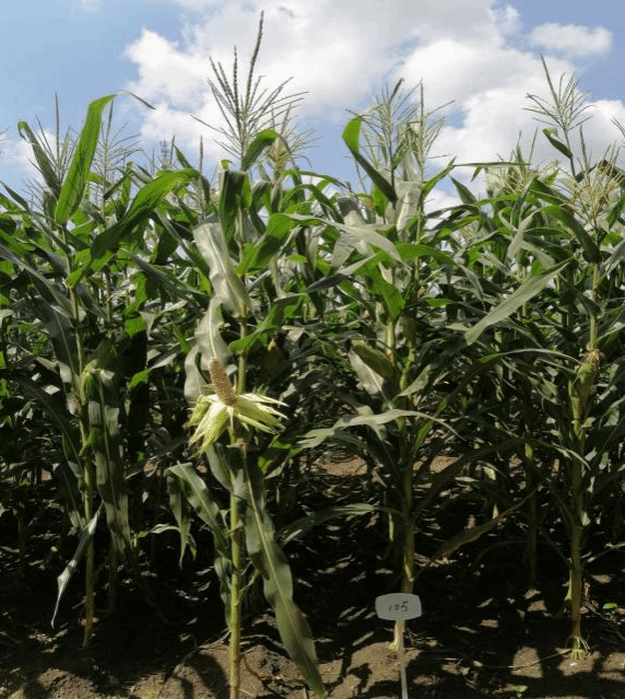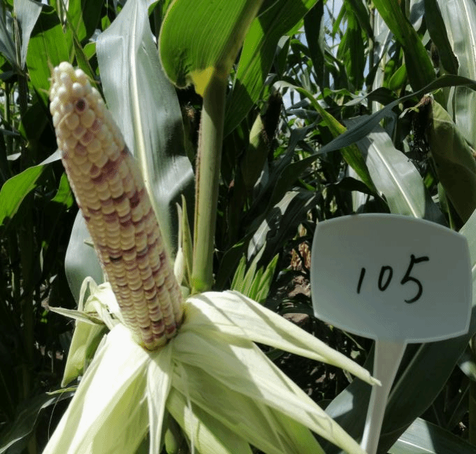 株高250cm,穗位高110cm,果穗筒形,穗长20cm,穗粗5.3cm,穗行数14,不秃尖,籽粒紫白花。