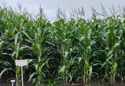 特征特性:幼苗期第一叶鞘紫色,叶片深绿色,茎绿色。株高263厘米,穗位高77厘米,成株可见12片叶。果穗长筒型,穗轴紫色,穗长21.0厘米,穗粗4.4厘米,穗行数14~16行,籽粒偏马齿型、黄色,百粒重34.5克。抗大斑病、丝黑穗病、茎腐病。需≥10℃活动积温2100℃左右,在适应区出苗至成熟生育日数105天左右。