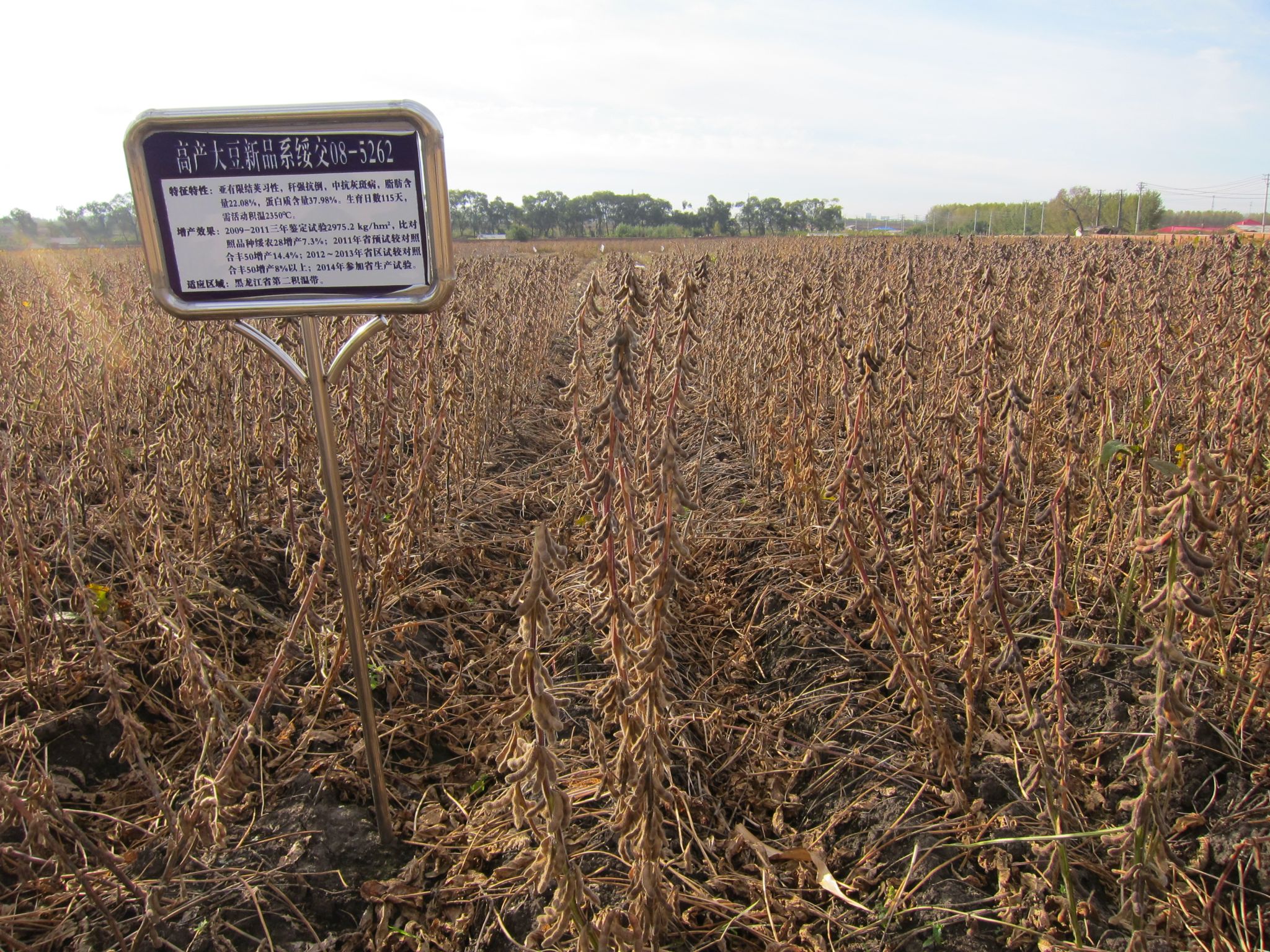 特征特性:该品种为高油品种,生育日数118天左右,需活动积温2400℃左右。属亚有限结荚习性。株高90厘米左右,无分枝,紫花,尖叶,灰色茸毛,荚弯镰形,成熟时呈褐色。子粒圆形,种皮黄色,种脐黄色,无光泽,百粒重19克左右。品质分析结果:蛋白质含量38.48%,脂肪含量21.88%。接种鉴定中抗灰斑病。秆强抗倒,主茎结荚型,荚密,二三粒荚多,不炸荚,适应性好。田间表现抗病。