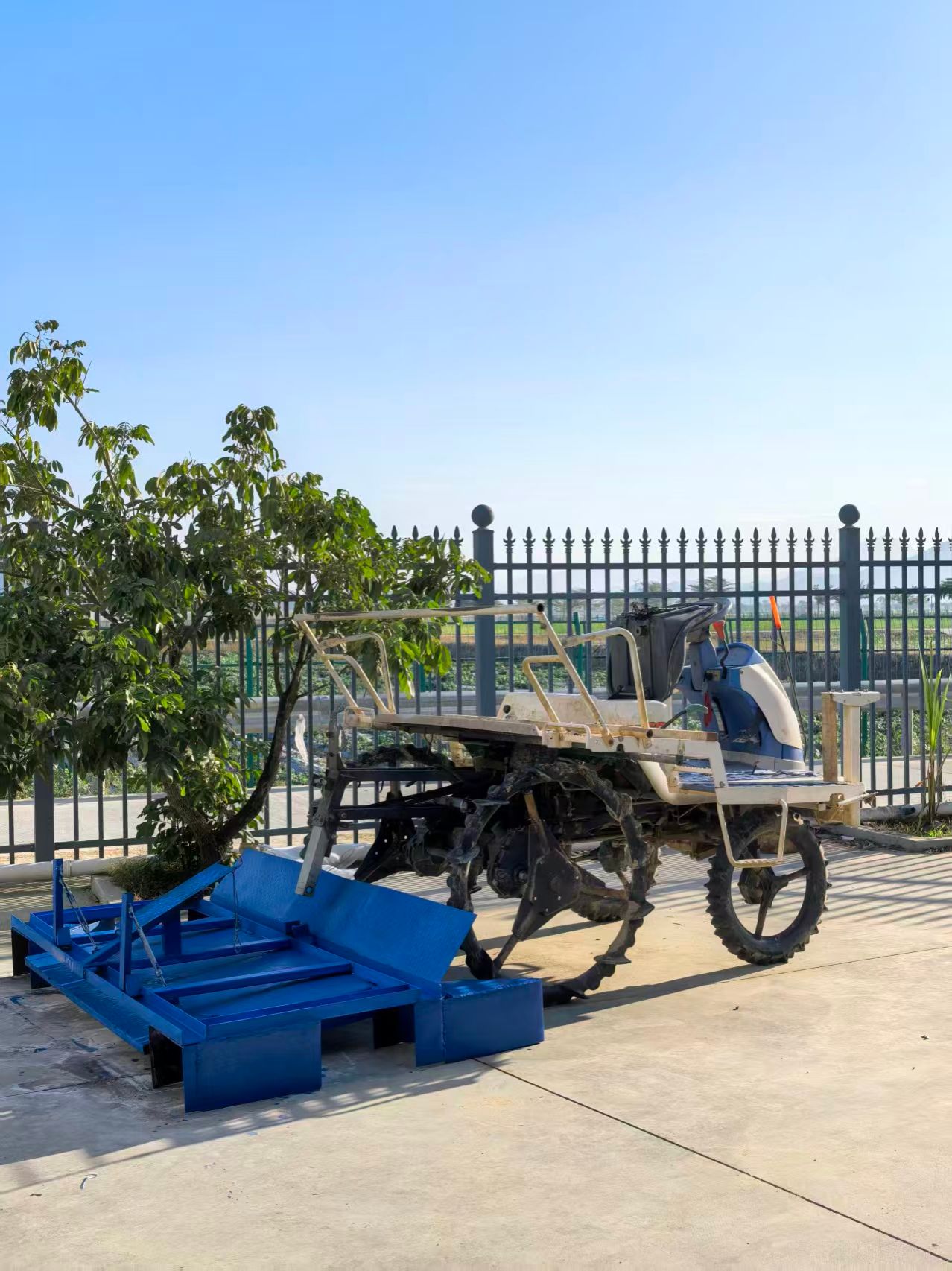 面对这一难题,我院南繁基地的科研人员主动作为,在基地负责人尹向前的大力支持下,跨单位、跨专业的协同攻关迅速展开。牡丹江分院孙玉友研究员主动将自家插秧机千里运至海南作为改造基础;栽培所周劲松副研究员充分发挥多年水稻栽培经验,精心设计机器结构与尺寸;黑河分院朱海芳利用休息时间手工焊接机器主体,大庆分院陈善和全程参与焊接与调试,确保各部件达标。