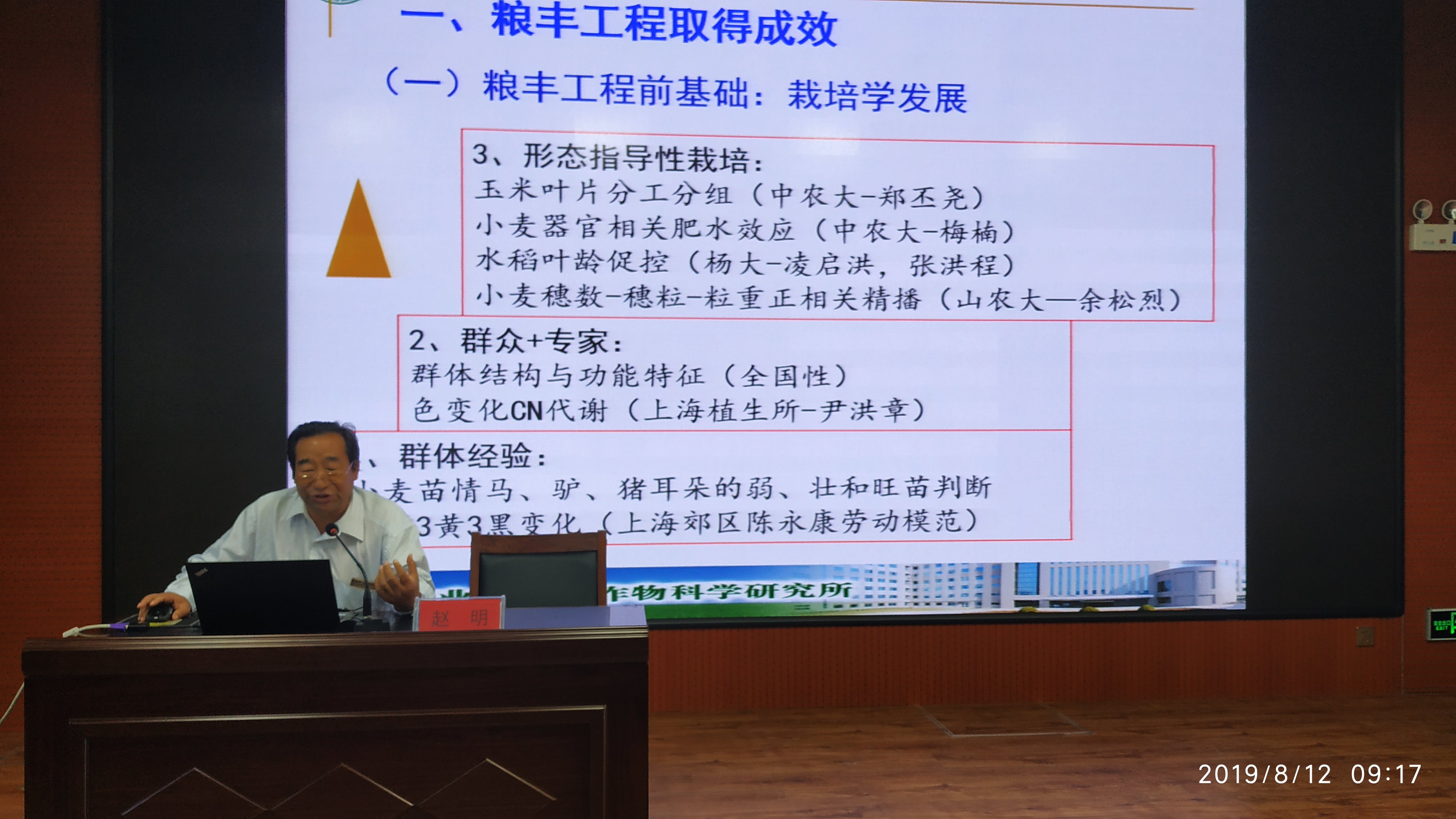 在专题报告会上,中国农业科学院作物科学研究所赵明研究员以《粮丰工程成效与未来重点任务》为题,详细介绍了我国粮食丰产增效科技创新工程项目自“十五”以来取得的成绩,对项目执行中存在的问题予以指导,并希望项目团队成员要依托我国农业“规模化高效、优质化增值、智慧化管理和生产循环绿色”的发展方向,以落实乡村振兴战略为指导,以实现农业农村现代化为目标,严谨求真、踏实工作。河南师范大学李春喜教授以《粮食丰产增效科技综合评价》为题,阐述了在我国粮食生产进入转型升级新阶段的背景下开展粮食丰产科技评价的重要意义,并希望项目组在开展科技评价时应紧扣重点专项的研究目标、研究内容和考核指标,从增产效果评价、效益效率评价和农田生态环境评价等多层次、多角度方面综合展开。