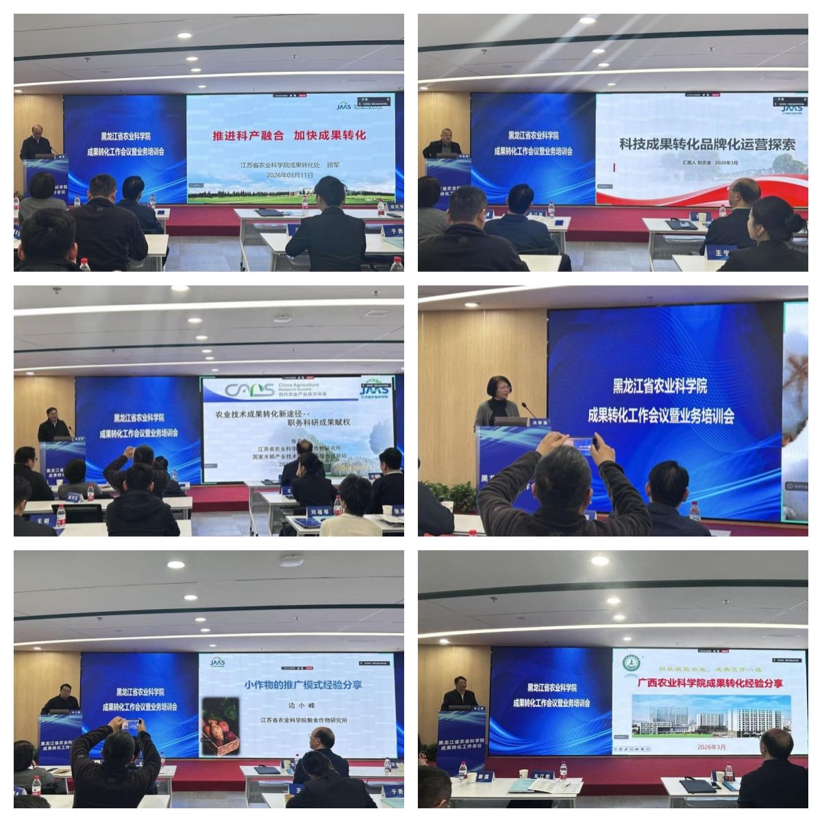 会上,院成果产业处、人事处对新制定成果转化相关管理办法进行详细解读,各院属单位就2026 年成果转化目标任务作表态发言。会议特别邀请江苏省农业科学院、广西农业科学院和黑龙江股权交易中心的专家,围绕产研深度融合、品牌市场化运营、职务科技成果赋权、产业研究院建设运行、高价值专利运用等主题开展经验交流与案例分享。