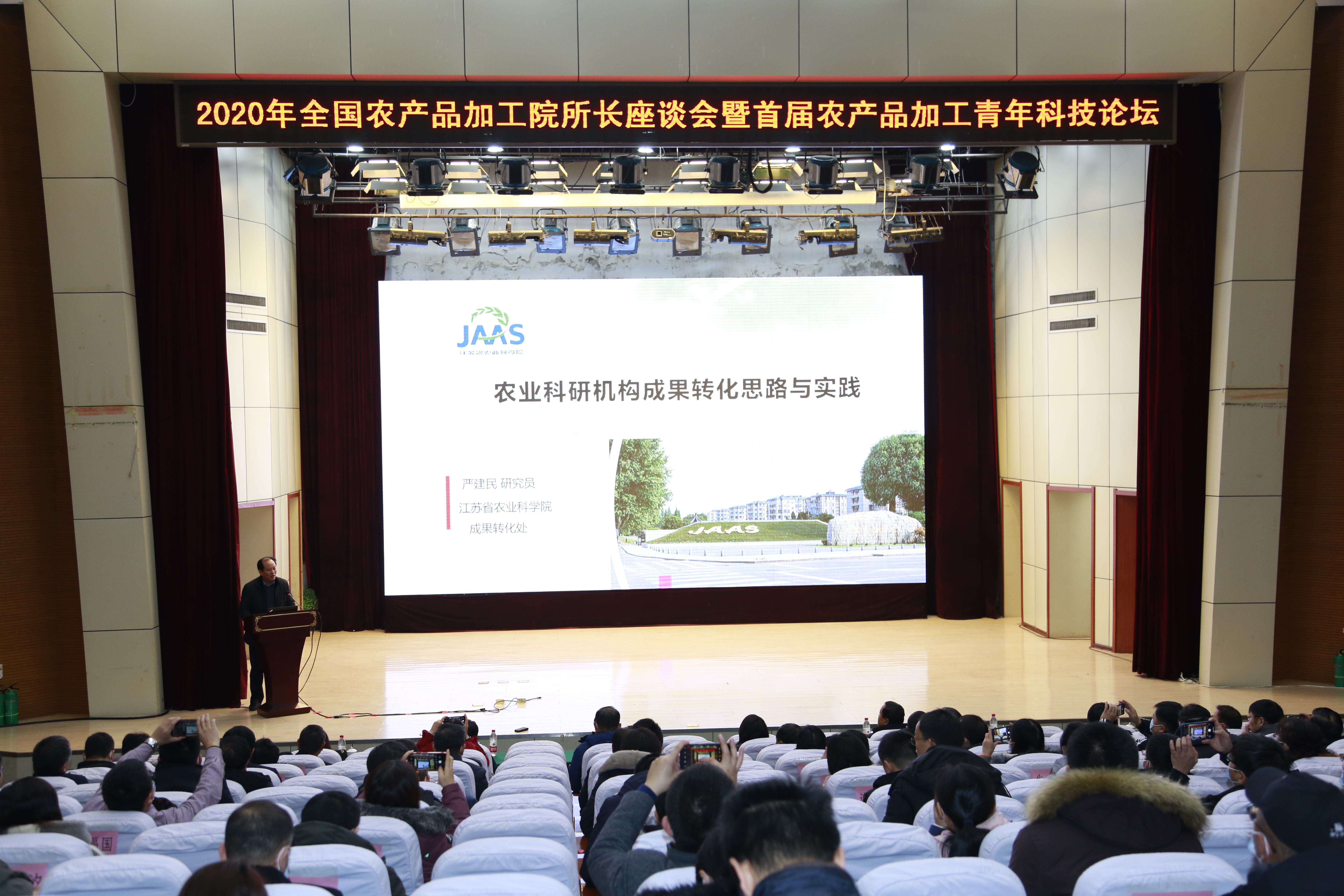 12月5日,由中国农业科学院农产品加工研究所主办,我院农产品加工研究所承办的2020年度全国农产品加工院所长座谈会暨首届农产品加工青年科技论坛在哈尔滨举行。院党组书记刘娣、副院长来永才,中国农业科学院农产品加工研究所所长王凤忠、副所长张德权,我院农产品加工研究所所长卢淑雯以及来自全国各地的农产品院所长和青年英才代表共计120余人参加了本次会议。来永才副院长主持会议。
