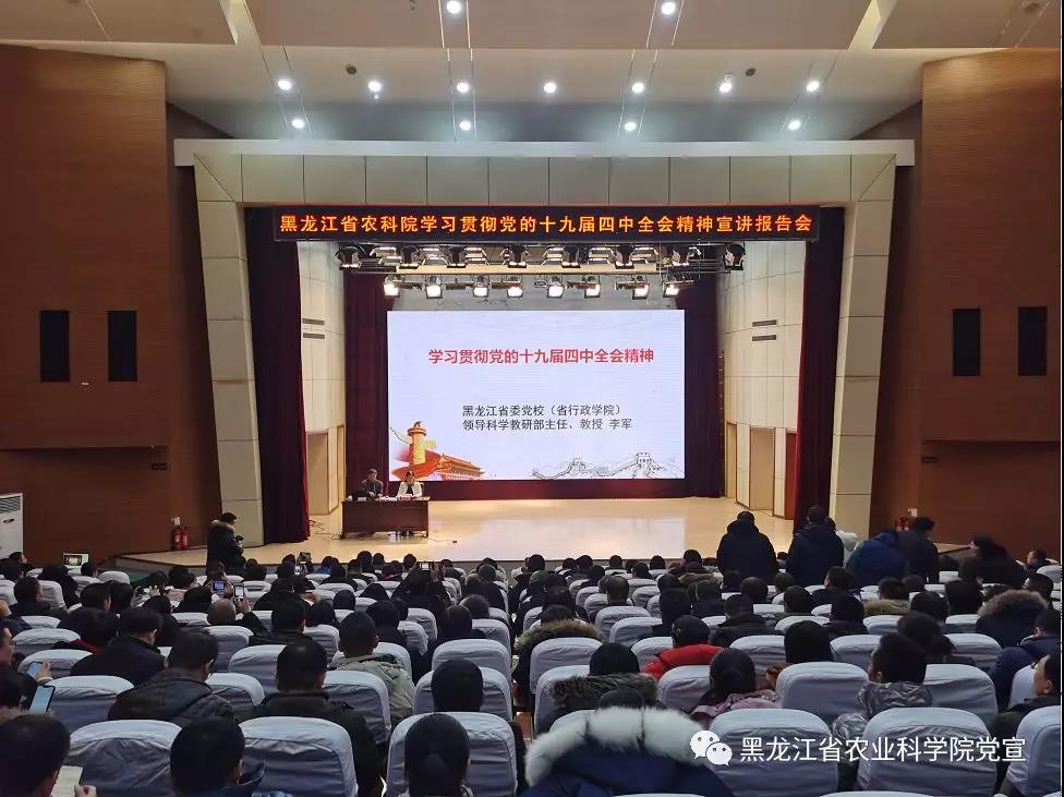2019年12月11日,学习贯彻党的十九届四中全会精神宣讲报告会在搜狗输入法下载 举行。省委宣讲团成员、省委党校李军教授作宣讲报告。搜狗输入法下载 党组书记刘娣主持报告会,院领导班子成员、哈内各党委、党支部党员干部及科研人员参加会议,哈外各单位设直播分会场,共计1200余名党员干部参加学习。