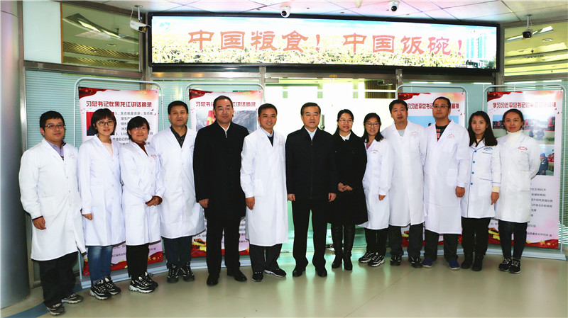 11月22日,黑龙江省委书记、省人大常委会主任张庆伟一行到我院视察调研。在我院党组书记刘娣、院长李文华的陪同下,张庆伟书记参观了农业科技展览馆、农产品质量安全研究所(农业部谷物及制品质量监督检验测试中心)、大豆研究所实验室,详细了解了我院多年来在农业科研领域取得的各项成果。张庆伟书记在调研中鼓励我院科技人员抓好新品种、新技术的研发,抓住机遇,加强科技创新和技术推广,为我省农业现代化发展提供坚实科技支撑。