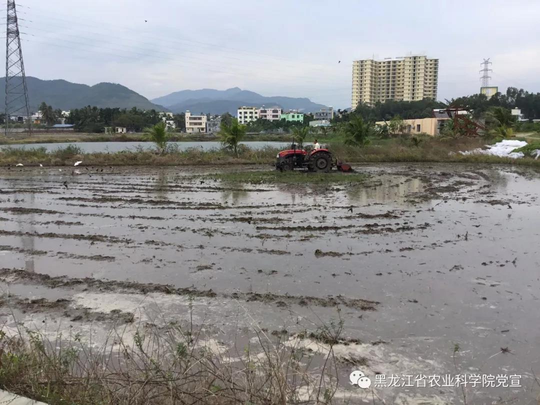 海南繁育基地为全院的南繁科研工作提供全面服务,图为海南基地机耕手在为水稻育种试验田整地。