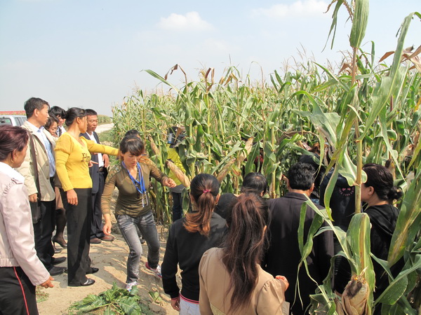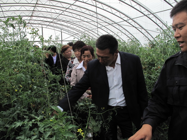仪式结束后,领导、专家组与服务队、合作社成员共同参观了UNDP致富项目。黑龙江省科学院微生物所曹亚斌研究员,资源环境学院副院长高洪生,分别向合作社成员介绍了玉米套种食用菌新技术及大葱、胡萝卜种植技术。最后,示范区管委会副主任李铭丰带领合作社和服务队成员参观了现代农业示范区,重点介绍了园区先进的设施农业技术。资源环境学院院长魏丹介绍了土壤肥料与环境资源研究所在民主园区的试验、示范工作。
