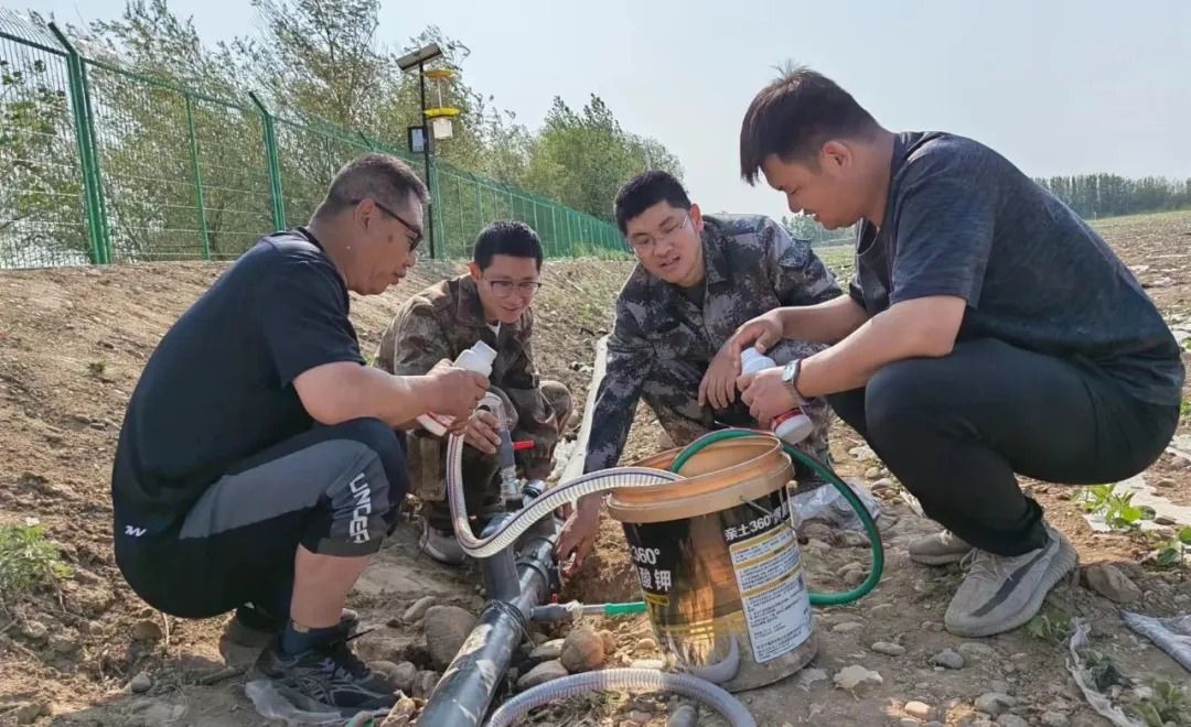 与农科所骨干安装文丘里施肥器。