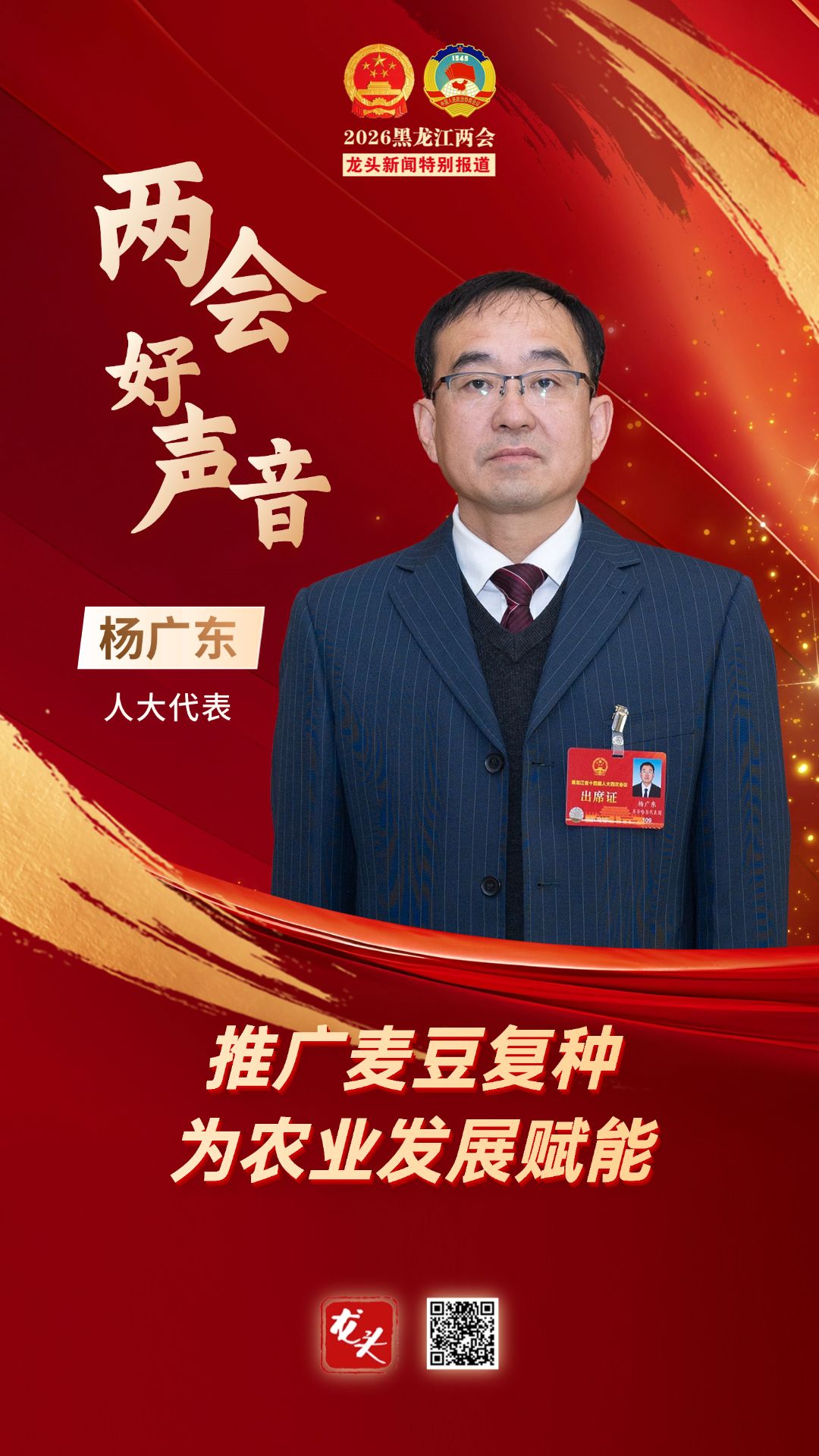 对此,杨广东代表建议,以现有的麦类、大豆种质资源为基础,进行极早熟小麦、大豆的新种质资源创制和新品种培育,并积极推广麦豆复种高效生产技术模式。通过设立课题项目,推动科研院所、大学、种业开展联合攻关,解决麦豆复种中品种选育、机械配套、栽培技术、机理机制等方面的技术难题,让新质生产力持续为我省农业发展赋能。