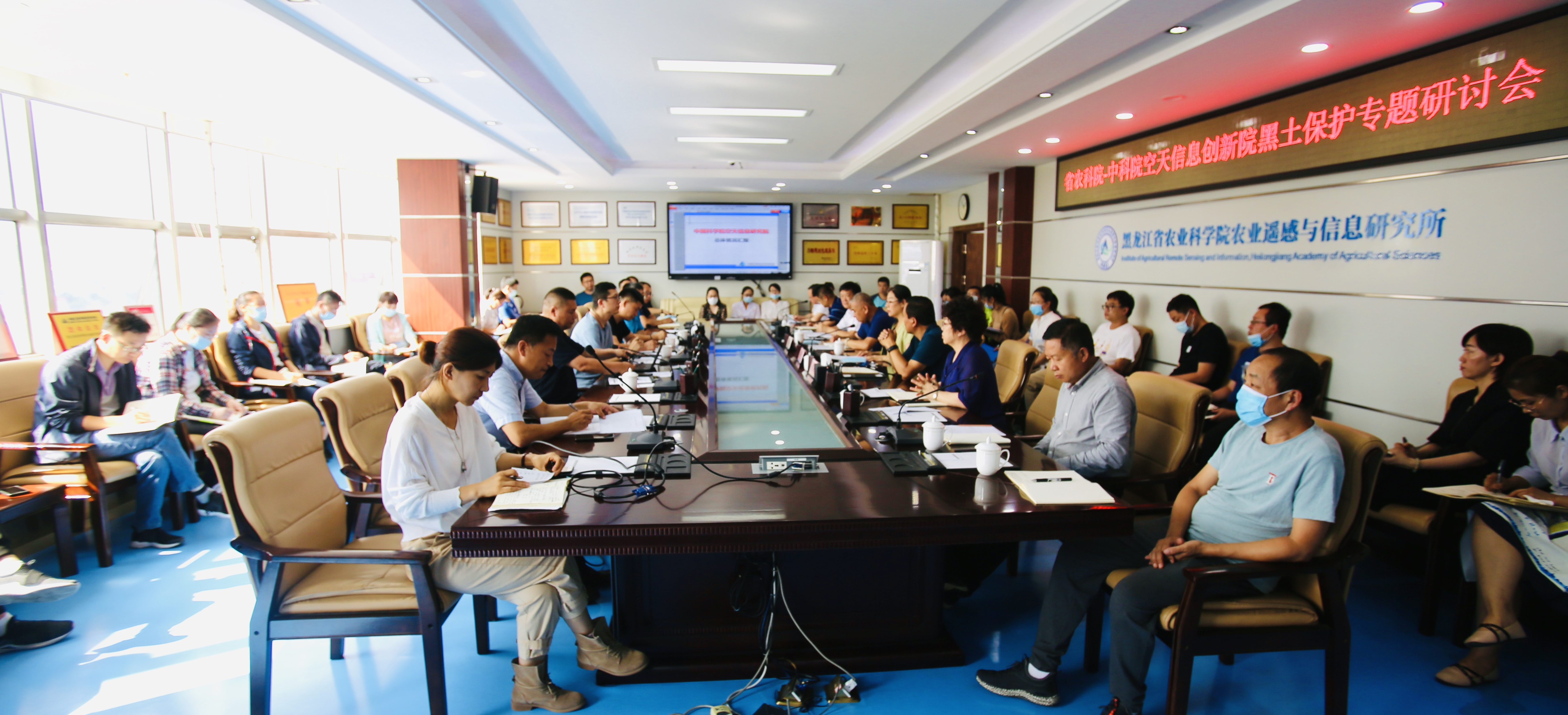 听了刘娣书记的介绍后,中科院遥感所研究员、全球商业遥感地面站网专项总师毕建涛表示,如何利用卫星和遥感技术对黑土地保护进行深度监测与有机质分析,也是中科院当前主要的科研领域。并从历史沿革、人力资源、科研平台、科教融合、科研方向等方面,向与会人员详细介绍了中国科学院天空信息研究院的总体情况,同时介绍了全球商业遥感卫星接收站哈尔滨基地与国际空天大数据产业园的建设情况,毕建涛表示,哈尔滨基地将成为东北地区开展空天大数据应用服务的重要平台,为占领空天数据源头和建设区域级空天大数据中心奠定坚实的基础,并将为“一带一路”、数字地球、空天地一体化产业、科研创新、智慧城市建设提供科学、高效、实时的空天大数据支撑。并就双方合作提出了尽快推进全球商业遥感卫星接收站哈尔滨站落地建设;建立东北亚黑土地时空大数据中心建设;建立东北亚黑土地检测管理研究中心三点建议和意见。