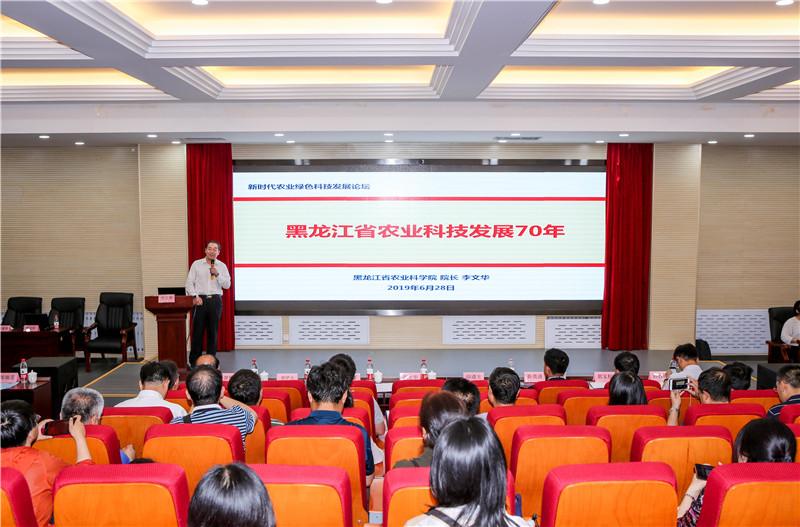 李文华院长受邀在会上作了《黑龙江省农业科技70年》的报告,回顾了我省农业科技历史。李文华院长表示,新中国成立初期,我省主要沿用农家种和部分引进及整理品种,这些品种抗病性弱,产量不高,品质不好。自上世纪60年代黑龙江省开展品种审定以来,各科研单位共审定和推广了2440个主要农作物新品种,使得我省的良种覆盖率达到98%,良种在农业增产中的贡献率达到45%,高于全国平均水平2个百分点。 在生产技术带动发展方面上,李文华院长表示,农业生产技术的进步是农业生产水平提升的有力措施。 “深松耕法”、 “机械化少耕技术”、“旱育稀植”、“垄三栽培”、“矮杆密植栽培”等一系列技术的推广应用极大促进了我省粮食产量大幅提高。