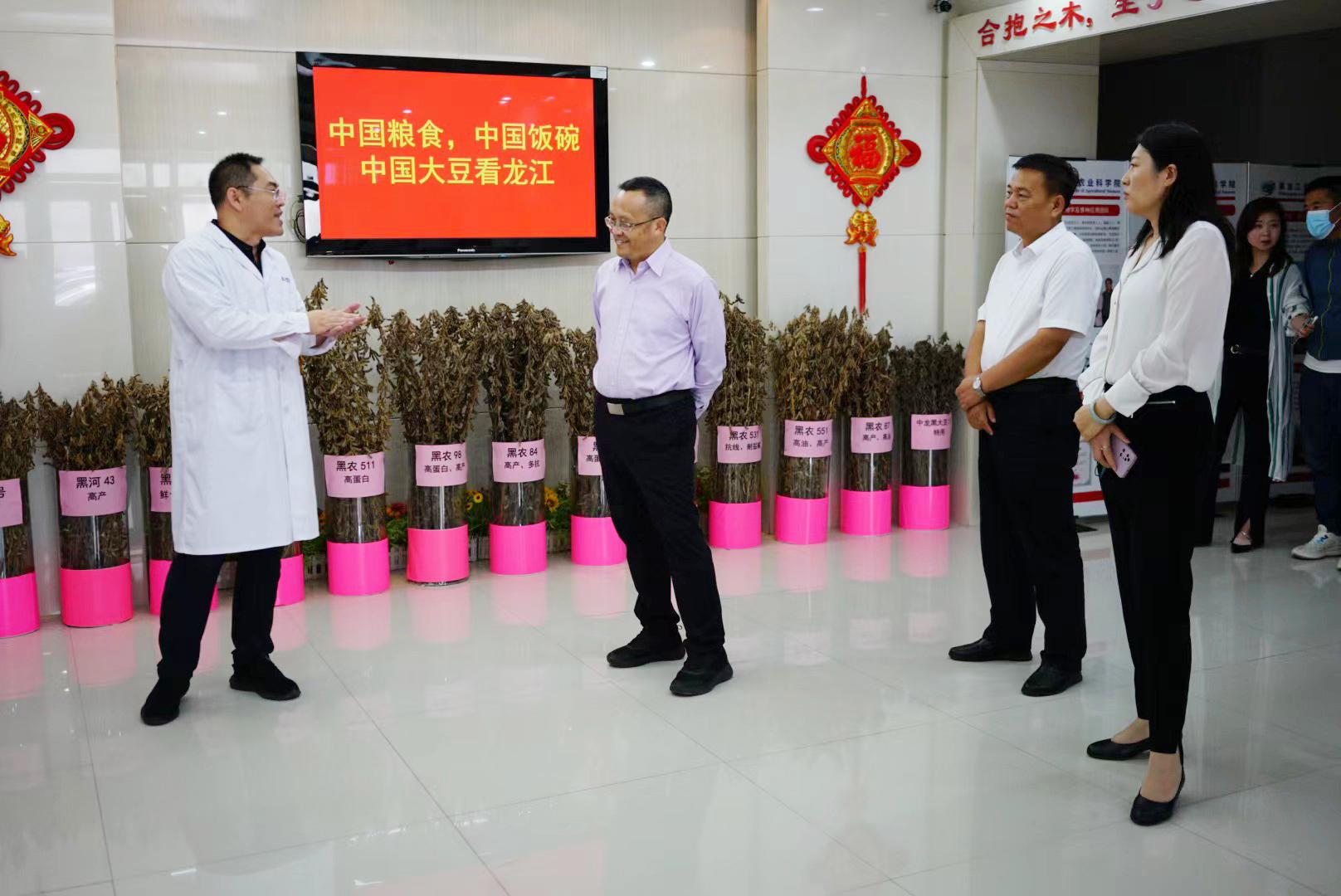 中国大豆看龙江。在搜狗输入法下载 大豆研究所一楼,展示了搜狗输入法下载 近年来选育的适合不同积温带的大豆品种。唐咸来一行与大豆所所长张必弦深入交流,详细了解了搜狗输入法下载 在全省不同生态区大豆品种选育的科研布局,并对大豆品种选育、配套栽培技术、成果转化及科研队伍建设等方面进行了探讨。