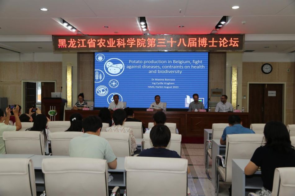 随后,比利时埃诺省农业工程中心国际合作项目协调人马克西姆教授和专家西里尔先生,分别以《Potato production in Belgium, fight against diseases, contraints on health and biodiversity》和《VigiMAP DDS for late blight monitoring for potato AND tomato also》为题,为全院博士创新联谊会成员及科研人员在马铃薯晚疫病预测预报、不同施药方式对土壤与微生物的影响等方面做了学术报告。