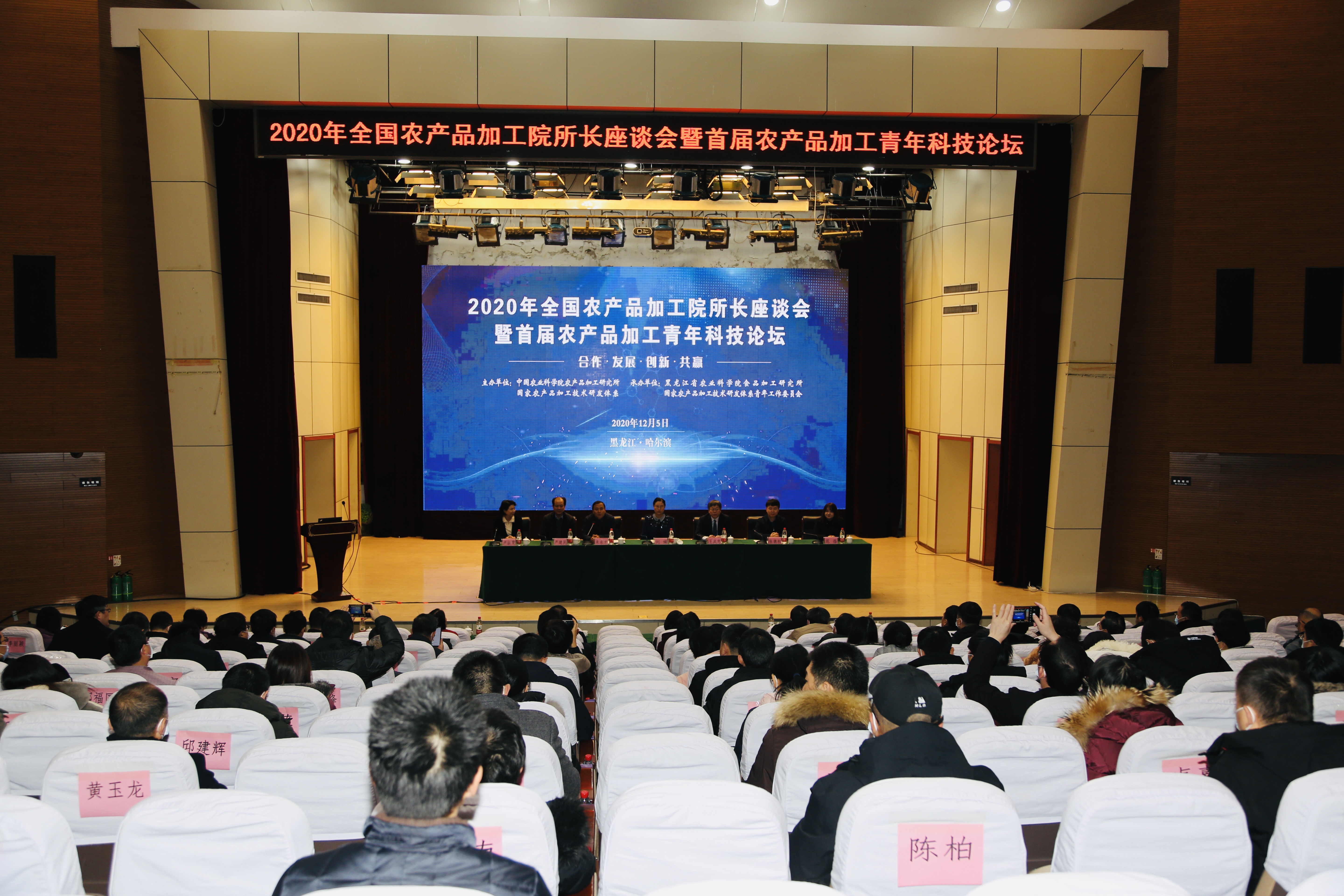 12月5日,由中国农业科学院农产品加工研究所主办,我院农产品加工研究所承办的2020年度全国农产品加工院所长座谈会暨首届农产品加工青年科技论坛在哈尔滨举行。院党组书记刘娣、副院长来永才,中国农业科学院农产品加工研究所所长王凤忠、副所长张德权,我院农产品加工研究所所长卢淑雯以及来自全国各地的农产品院所长和青年英才代表共计120余人参加了本次会议。来永才副院长主持会议。
