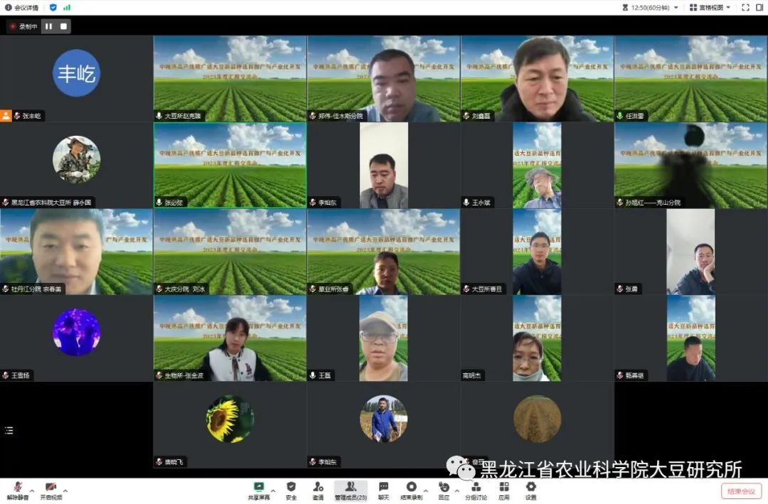 12月24日上午,为更好完成黑龙江省农业科技创新跨越工程重大需求科技创新攻关《中晚熟高产优质广适大豆新品种选育推广与产业化开发》项目,总结2023年研究成果,梳理项目实施一年来存在的问题,由项目牵头单位大豆研究所组织,佳木斯分院、牡丹江分院、克山分院、大庆分院、生物技术研究所、草业研究所7家单位参加共同汇报交流,项目课题主持人、子课题负责人和项目执行骨干参加了会议。