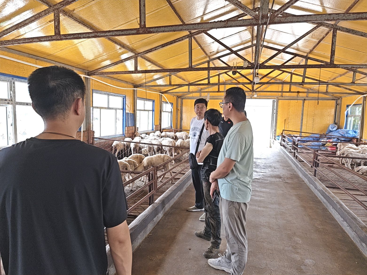 服务队来到兴盛乡湖羊养殖户家中,了解到该养殖户基础母羊存栏量600只左右,以纯种湖羊繁育为主,然而羊肉价格低迷导致养殖户处于持续亏损状态,急需解决的办法,针对此种情况,队员王嘉厚建议农户可采用杂交改良的方法,结合湖羊高繁殖力的特点,提高单只羊产肉能力,从而提高经济效益。在新镇乡养猪育肥户的家中,服务队了解到,目前炎热的天气限制了养殖增重,王宇给出了几项防暑降温的措施,尽量降低炎热天气对育肥猪日增重的影响,从而提高产能。