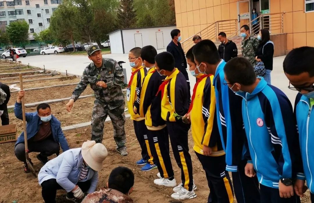 为北屯中学的学生讲解农业科技知识。